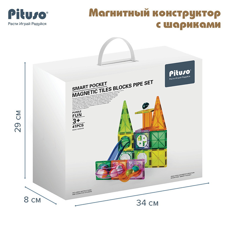 Конструктор на магнитах можно дополнять новыми элементами и совмещать с другими игровыми наборами серии Pituso.