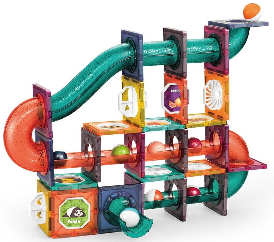 В наборе 78 элементов - конструктор-72 эл-та, шарики - 6 шт.
