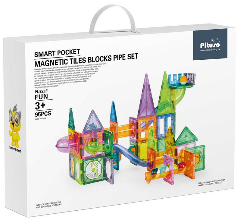 Конструктор на магнитах можно дополнять новыми элементами и совмещать с другими игровыми наборами серии Pituso.