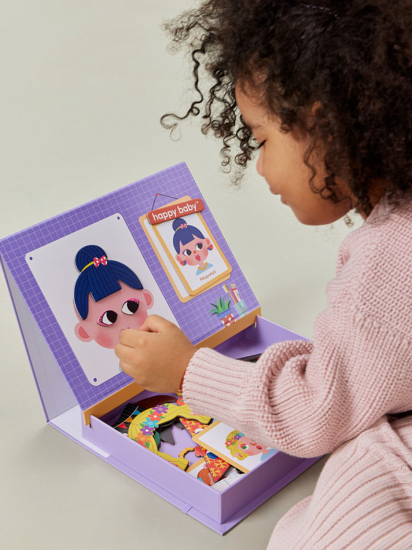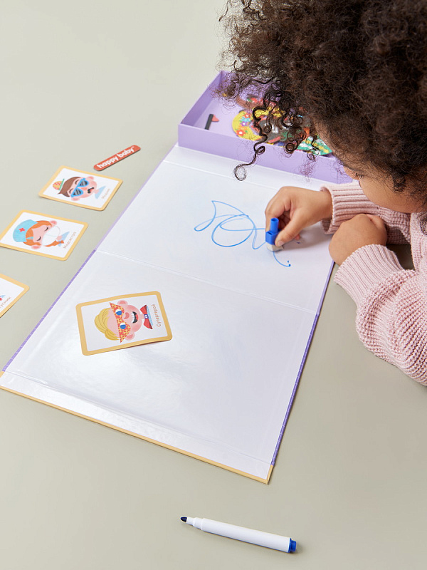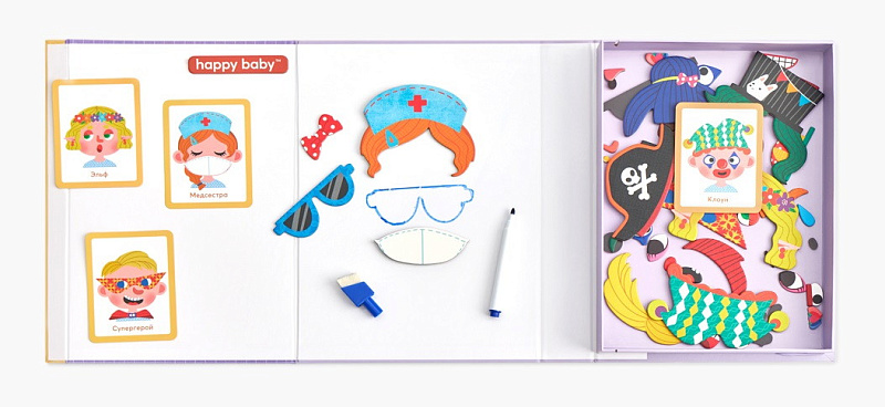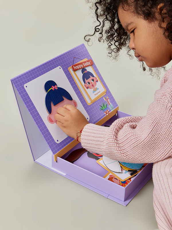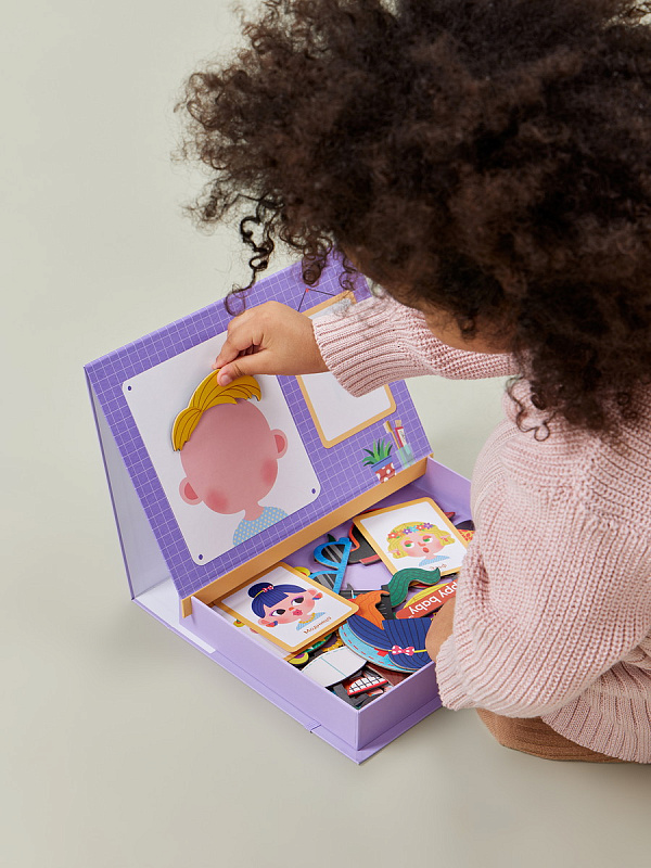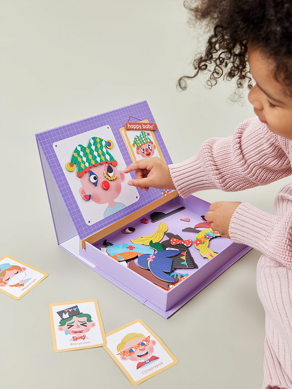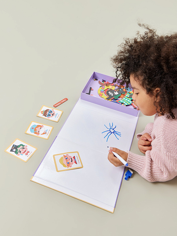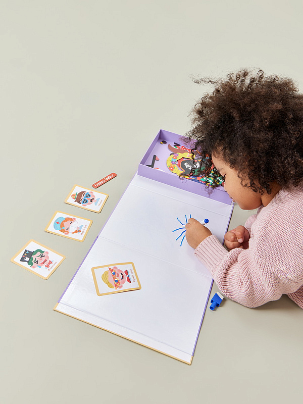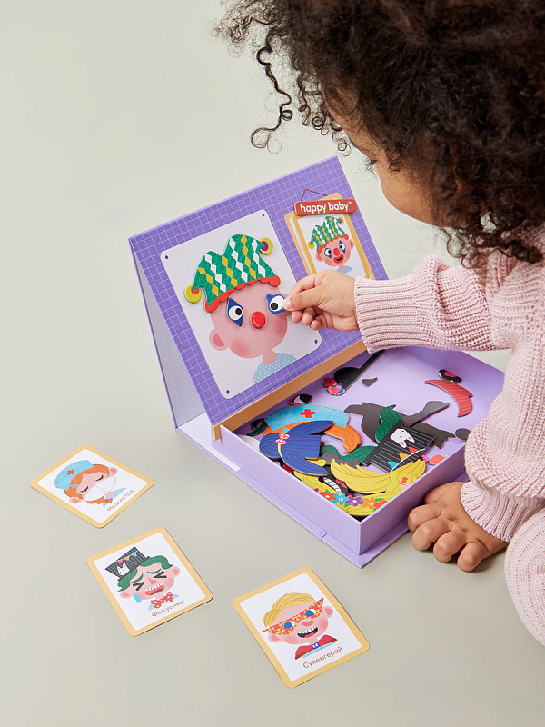 Набор станет замечательным подарком любому ребенку. Цель этой игры - воссоздать портреты с помощью имеющихся элементов. Магнитный пазл развеселит и увлечет малыша. Создавайте забавные лица, смейтесь вместе и помогайте малышу развиваться. Все элементы набора имеют магнитную основу, легко крепятся к магнитной доске. Набор развивает мелкую моторику, воображение, цветовое восприятие и эмоциональный интеллект. Игрушку удобно брать с собой в поездки – все детали хранятся в коробке и никуда не выпадут во время творческого процесса.