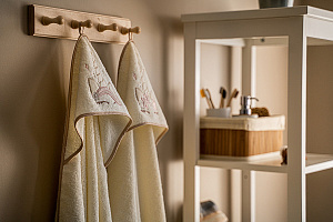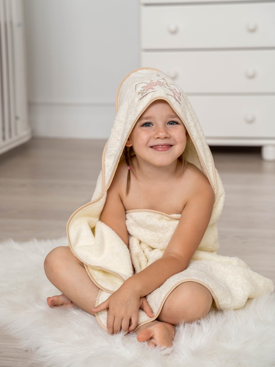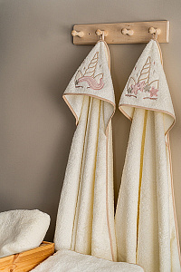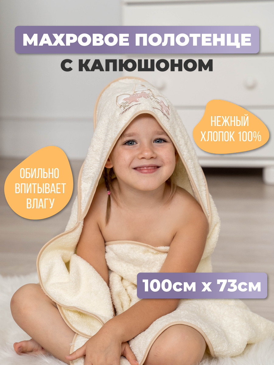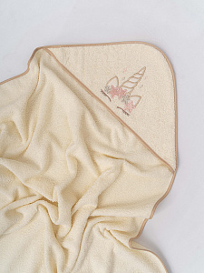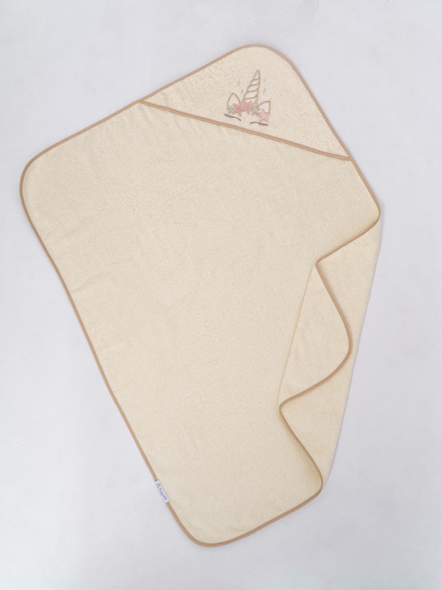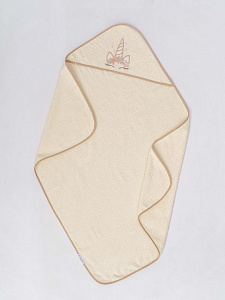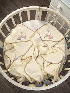 Пеленка с уголком изготовлена из безопасных и качественных материалов. Уголок-капюшон украшен милым рисунком.