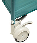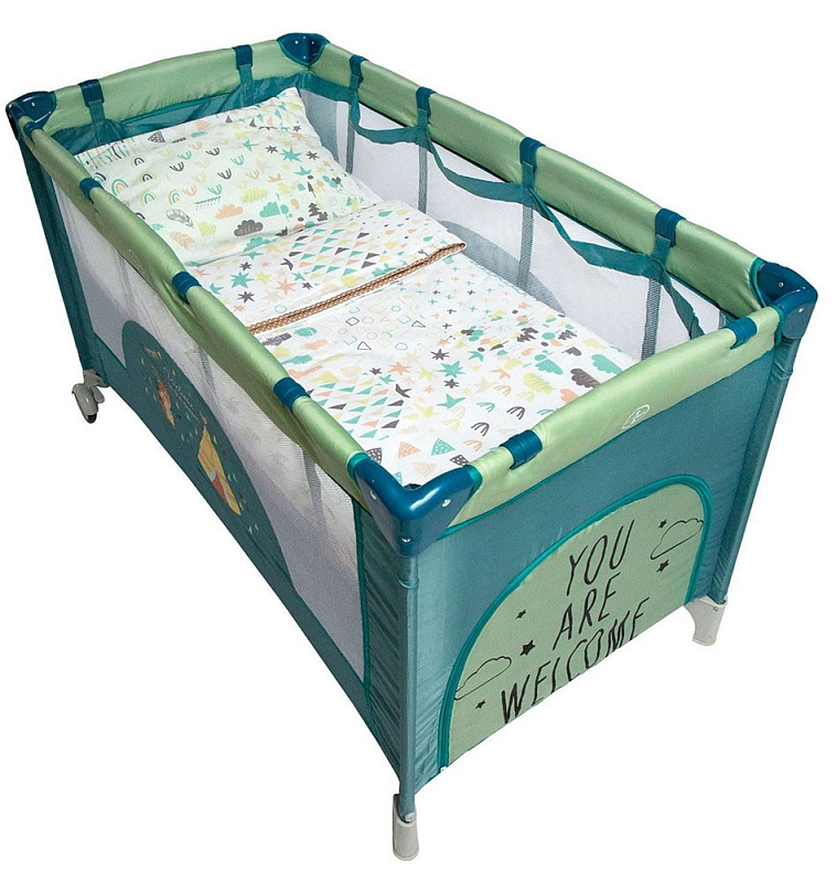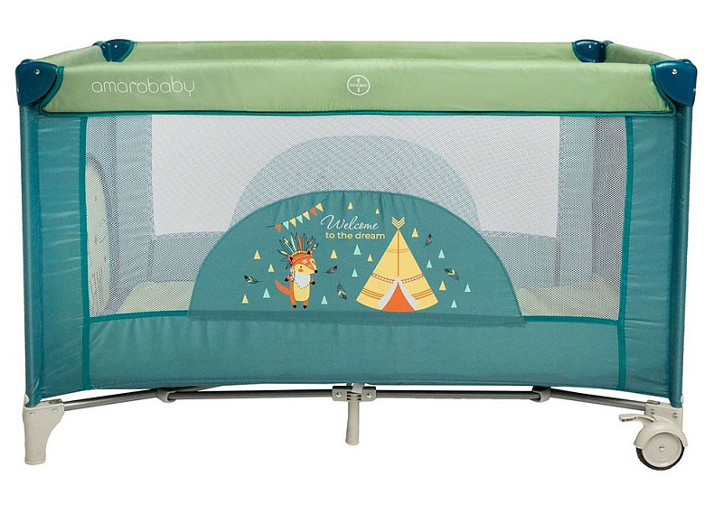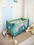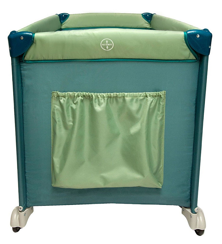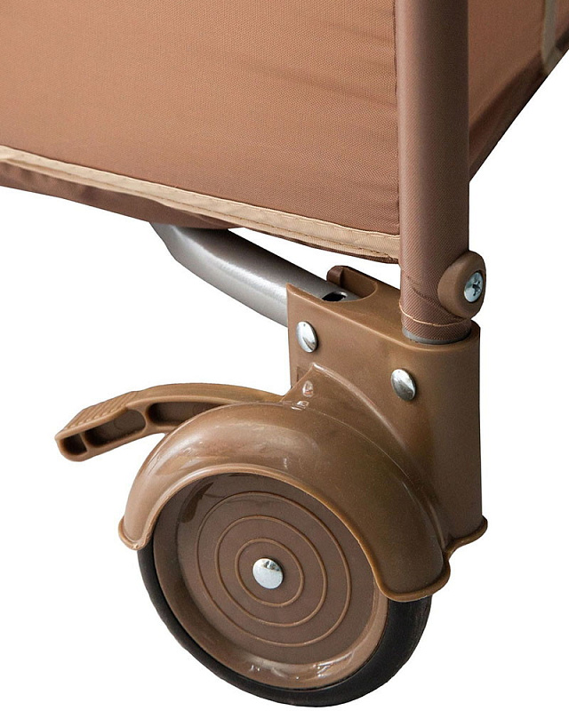 - Манеж-кровать оснащен 2 колесами с блокираторами. Благодаря которым его легко переносить/перевозить