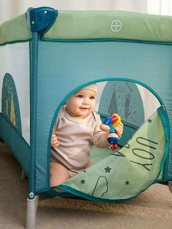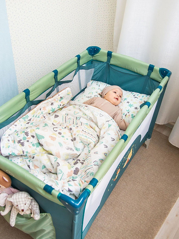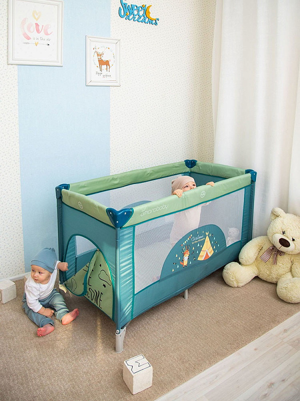 - Второй (верхний) уровень с матрасом в функции кровати подходит для детей не тяжелее 10 кг. Манежем в функции кроватки рекомендуется пользоваться до того момента, пока ребенок не научился вставать и подтягиваться, держать за опору.