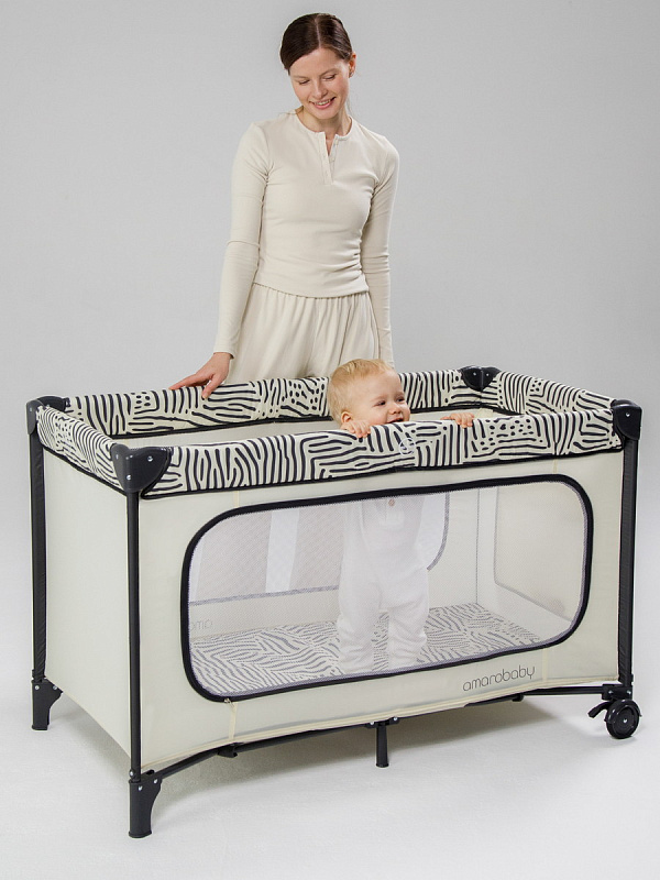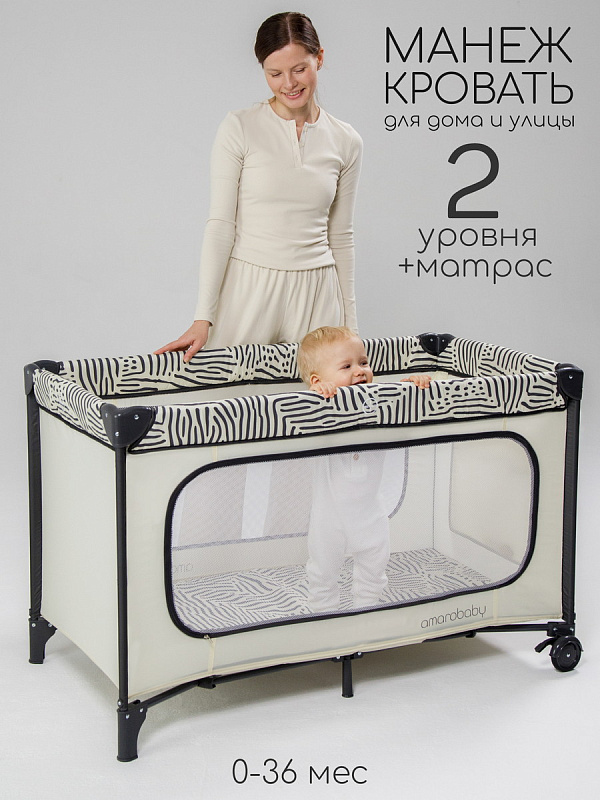 Детский манеж-кровать AmaroBaby Smart станет любимым местом вашего малыша для сна и игр. Незаменимая вещь в поездках и дома. Манеж имеет два уровня с удобным матрасиком, спальное место 120*60 см. В комплекте также идет сумка для переноски. Манеж для детей легко собирается, в сложенном виде занимает мало места. Кроватка оснащена колесами с фиксацией, которые позволяют легко перемещать манеж по комнате без усилий. Игровой манеж имеет вместительный кармашек для игрушек, а также большой лаз через который ребенок сам может залезать. Прочная конструкция из металла и пластика делает кроватку надежной и устойчивой. Высокие бортики и прочная сетка обеспечивают максимальную безопасность малыша, не ограничивая ваш обзор. Манеж AmaroBaby-идеальное пространство для игр, сна и отдыха вашего ребенка.