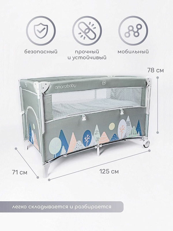Манеж детский AMAROBABY. Детский манеж, который легко превращается в комфортную приставную кроватку, благодаря опускающейся стенке. Манеж детский кроватку можно установить рядом с кроватью родителей - приставная кровать. Манеж кровать прекрасно подойдёт для дома и путешествий. В комплекте дорожная сумка.