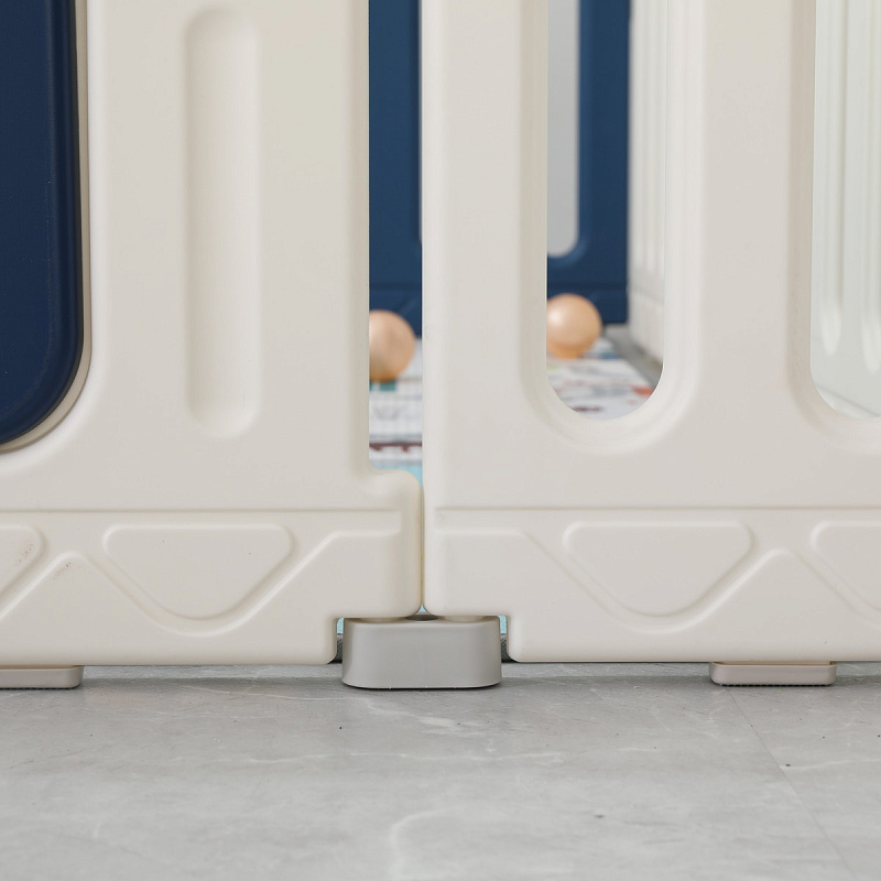 Все поверхности и высота манежа 67 см. спроектированы таким образом, чтобы максимально обезопасить ребенка от ушибов. Надежная конструкция, специальный фиксатор двери (входа в манеж), прочные соединители секций, противоскользящие опоры и специальные присоски создают идеальные условия для комфортного и безопасного времяпрепровождения юных исследователей мира.