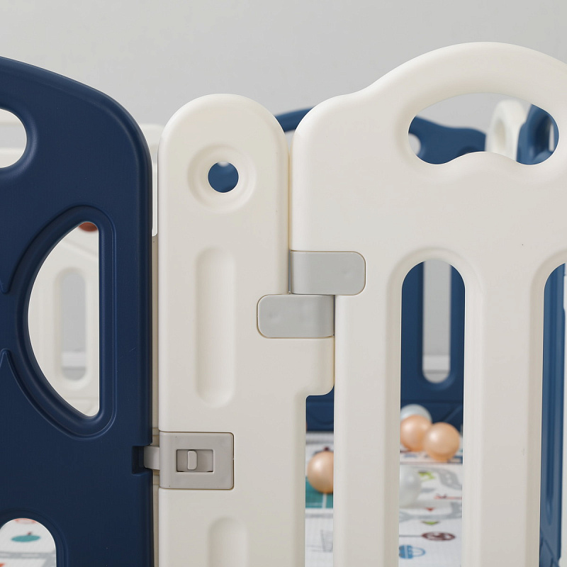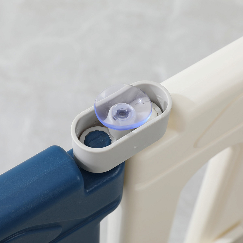 Все поверхности и высота манежа 67 см. спроектированы таким образом, чтобы максимально обезопасить ребенка от ушибов. Надежная конструкция, специальный фиксатор двери (входа в манеж), прочные соединители секций, противоскользящие опоры и специальные присоски создают идеальные условия для комфортного и безопасного времяпрепровождения юных исследователей мира.