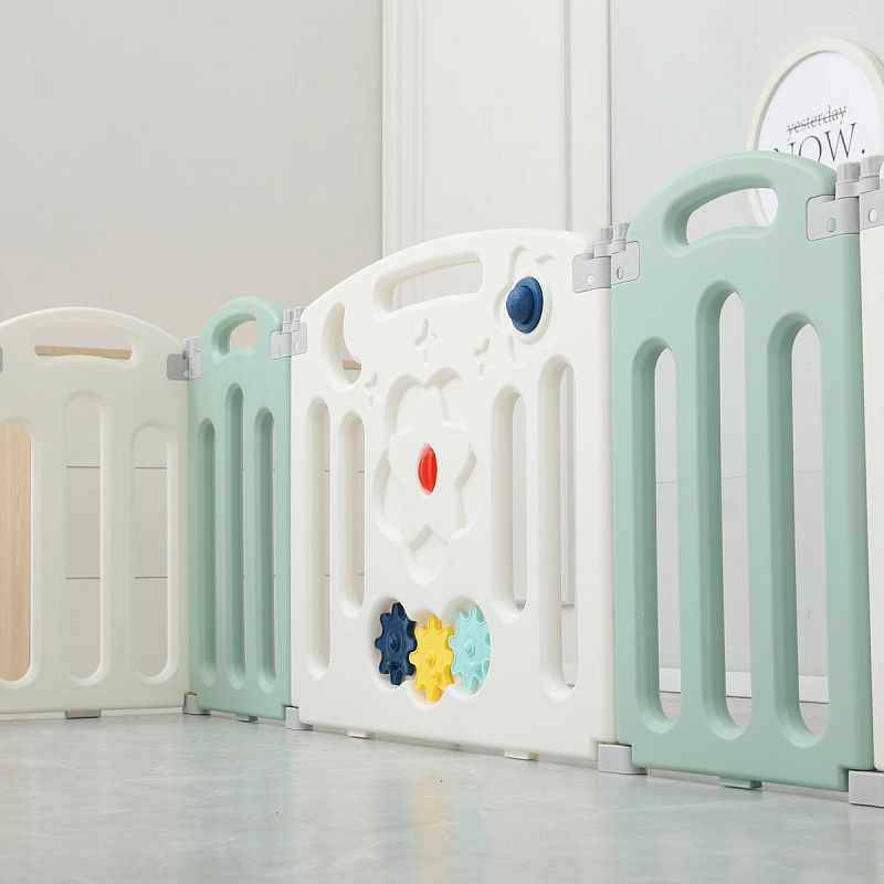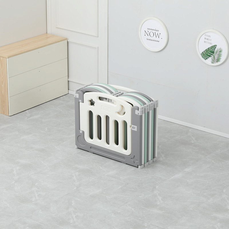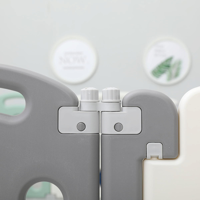 Легко хранить и перевозить. Манеж складывается за мгновение и уже готов для перевозки. Поднимите соединительные элементы вверх и сложите манеж, затем опустите их для фиксации.
