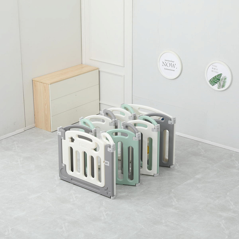 Легко хранить и перевозить. Манеж складывается за мгновение и уже готов для перевозки. Поднимите соединительные элементы вверх и сложите манеж, затем опустите их для фиксации.