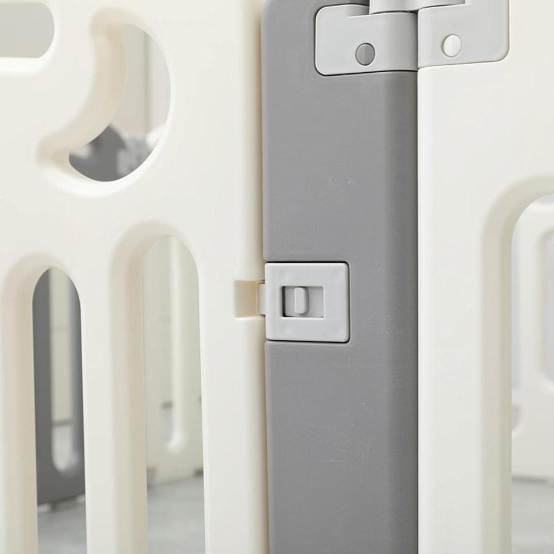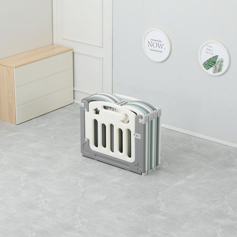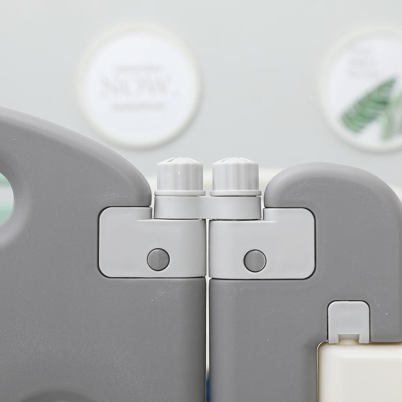 Легко хранить и перевозить. Манеж складывается за мгновение и уже готов для перевозки. Поднимите соединительные элементы вверх и сложите манеж, затем опустите их для фиксации.
