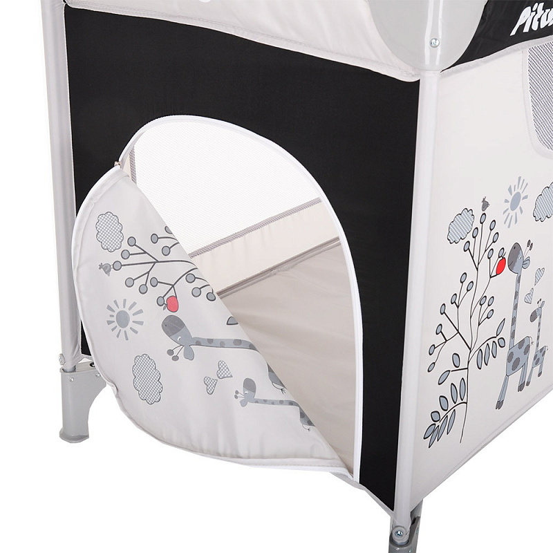 - компактно складывается, что дает возможность брать манеж с собой в путешествия