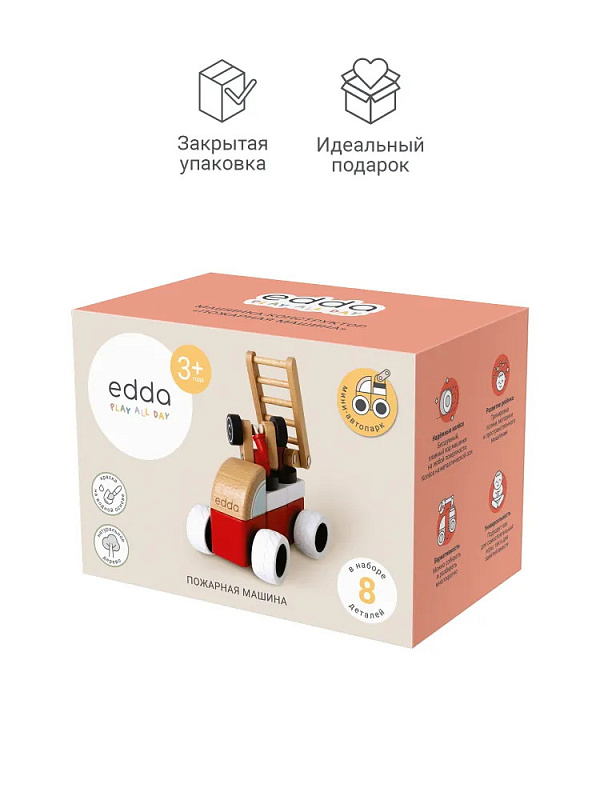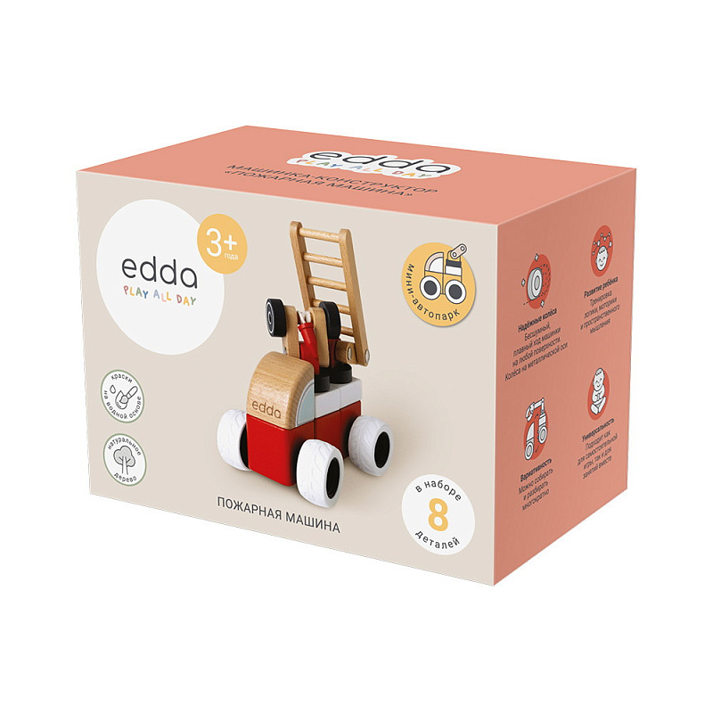 Уникальная серия конструкторов «Мини-автопарк» edda – это увлекательные развивающие занятия как для самостоятельной игры малыша, так и для игры с близкими. Собирайте и разбирайте машинки, знакомясь с принципами сборки и получая первые навыки конструирования. В серии представлены следующие модели: грузовая машина, автокран с магнитом, пожарная машина, строительная машина, погрузчик, лесовоз с краном. Соберите «Мини-автопарк», чтобы построить настоящий город Детства!