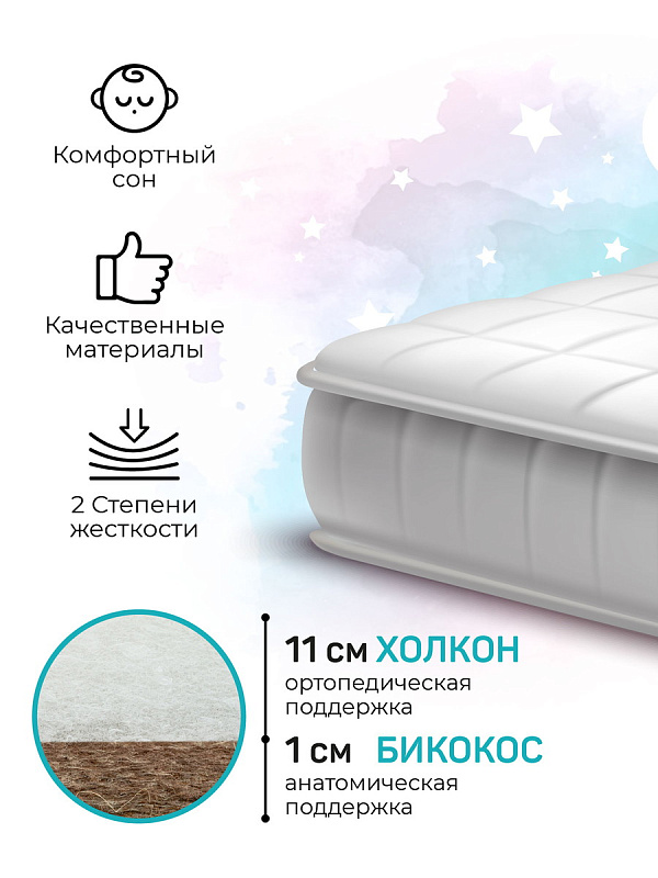 - Имеет две стороны оптимальной жесткости, рекомендованные для правильного развития костной системы младенца.