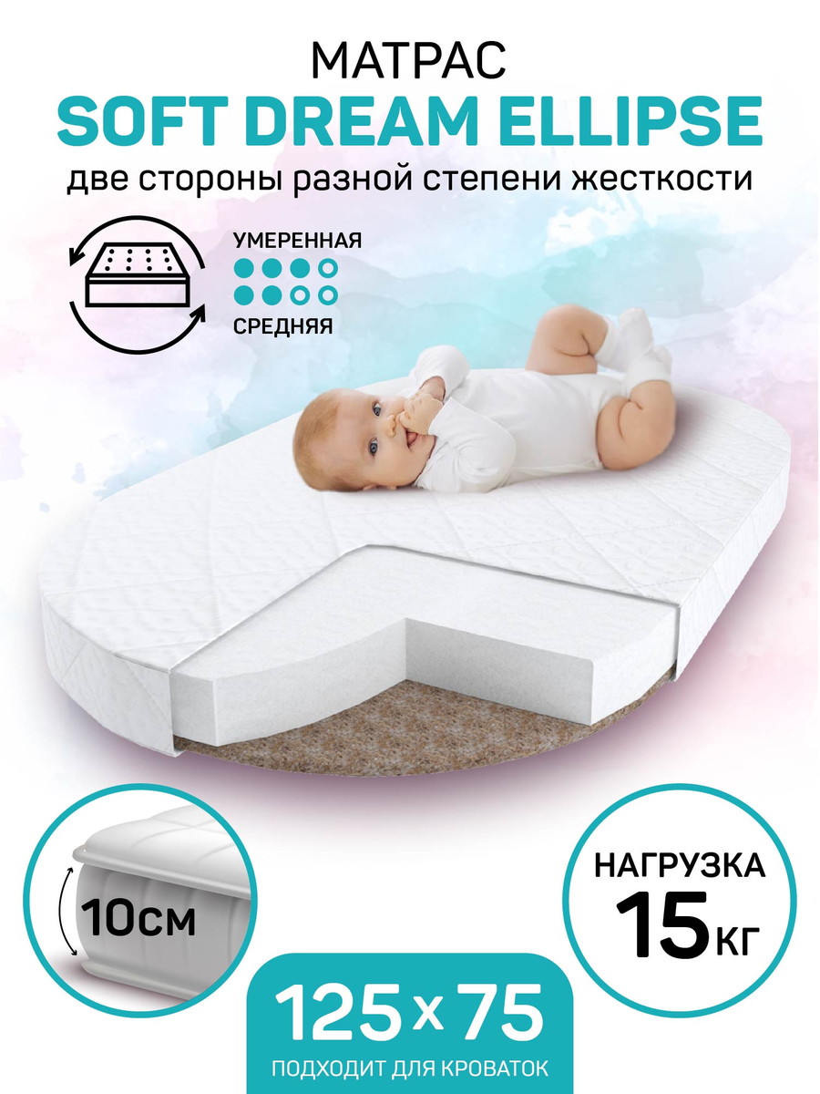 Ортопедический детский матрас AmaroBaby Soft Dream Ellipse 125x75х10, купить который вы можете в нашем онлайн-бутике, обеспечит малышу необходимый комфорт и правильное развитие неокрепшего позвоночника. Предназначен для кроватки овальной конфигурации. Рекомендуется с первых дней жизни младенца.