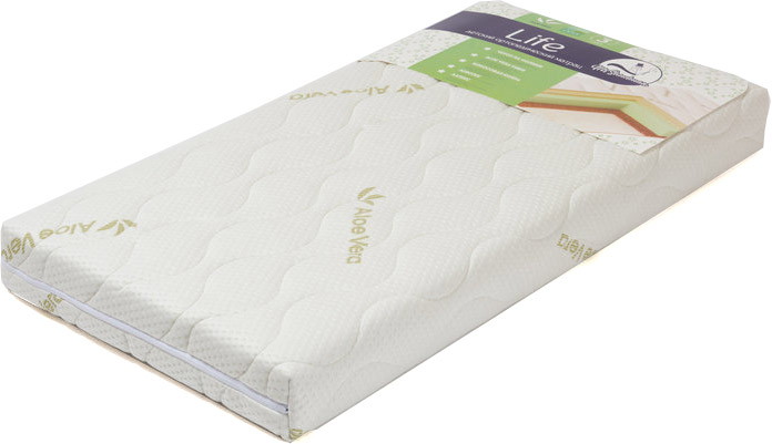Двусторонний беспружинный детский матрас Mr Sandman Aloe Vera Life 120х60 cм с различными сторонами жесткости обеспечит правильное развитие позвоночника ребенка и прослужит долгие годы без необходимости замены.