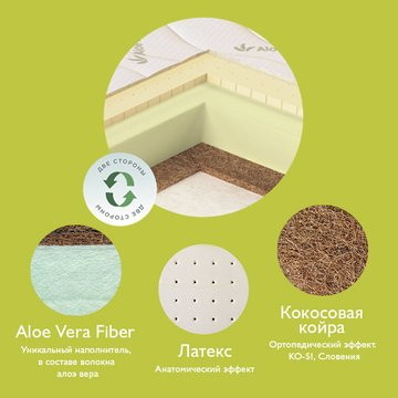 • Наличие двух сторон жесткости (более твердая сторона с кокосовой койрой предназначена для младенцев первого года жизни, более мягкая - с натуральным латексом - для деток более старшего возраста) позволяет сэкономить на приобретении дополнительного матраса при взрослении малыша.
