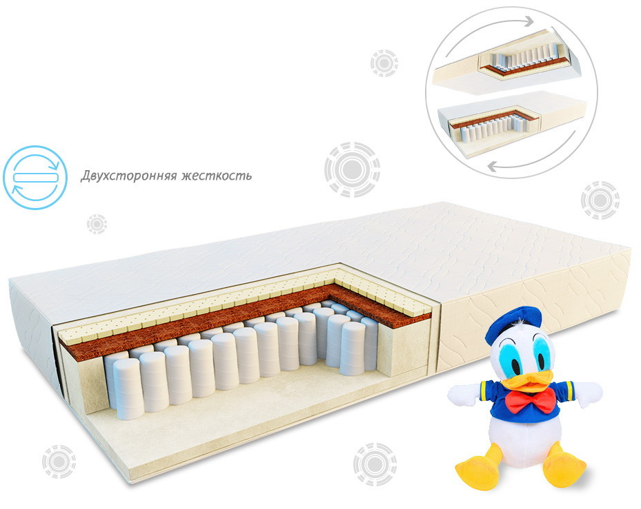 Более жесткая сторона обычно используется для детей помладше, чтобы обеспечить ортопедическую поддержку позвоночнику и таким образом помочь его правильному формированию. Более мягкая сторона используется после того, как ребенок немного подрастет и позволит ему чувствовать себя максимально комфортно.