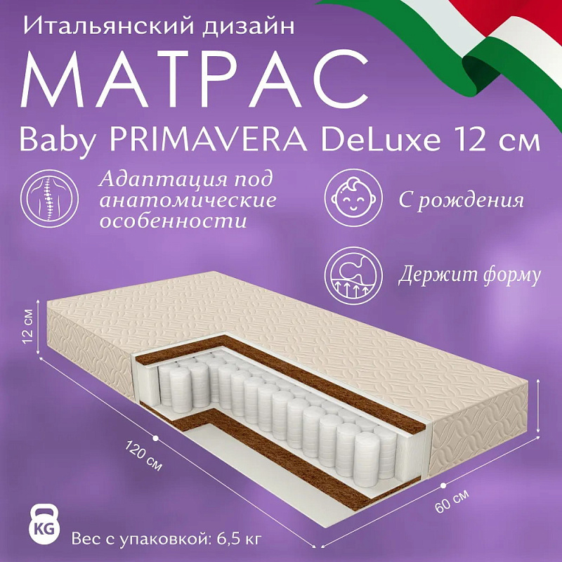 Матрас в кроватку Sweet Baby PRIMAVERA DeLuxe 120х60х12 см