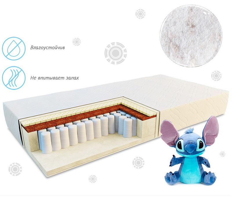 На сегодняшний день это самый популярный наполнитель для детских матрасов. Он экологически чист и гипоаллергенен. Кроме того, он наделен бактерицидными свойствами.