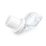 - Выберите и наденьте насадку. Для ротовой ингаляции в комплекте есть мундштук. Для назальной ― две маски разного размера для малышей и детей постарше.