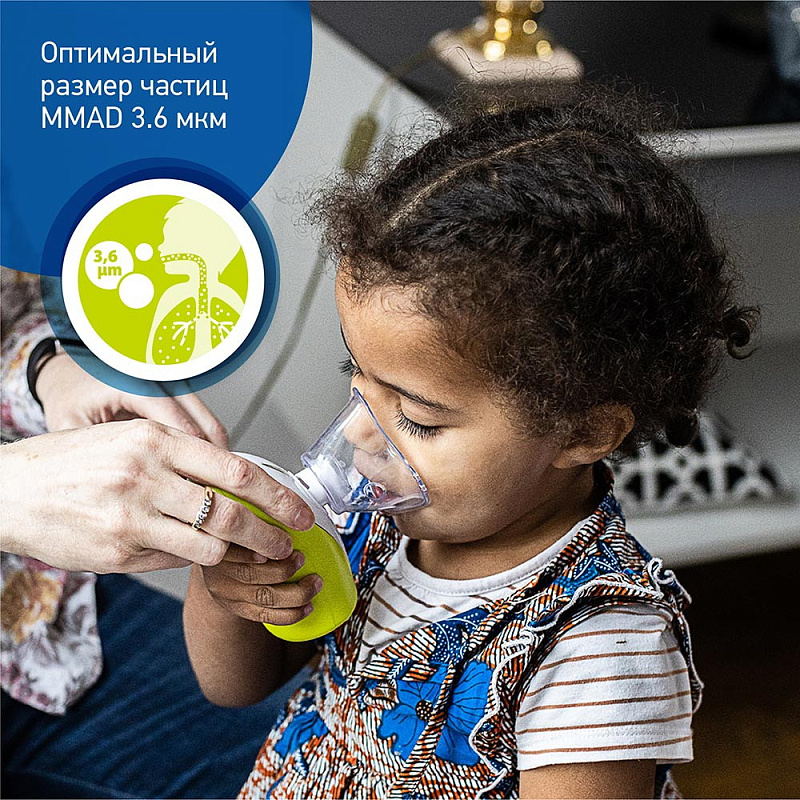 Принцип работы электронного прибора, разработанного в Швейцарии, основан на вибрациях сетки-мембраны (меш), через которую пропускается лекарство. Образуется мелкодисперсное облако. Мелкие капли аэрозоля размером 3,6 мкм легко проникают в нужную зону дыхательных путей, помогая предотвратить хронические заболевания бронхов, легких и лор-органов.