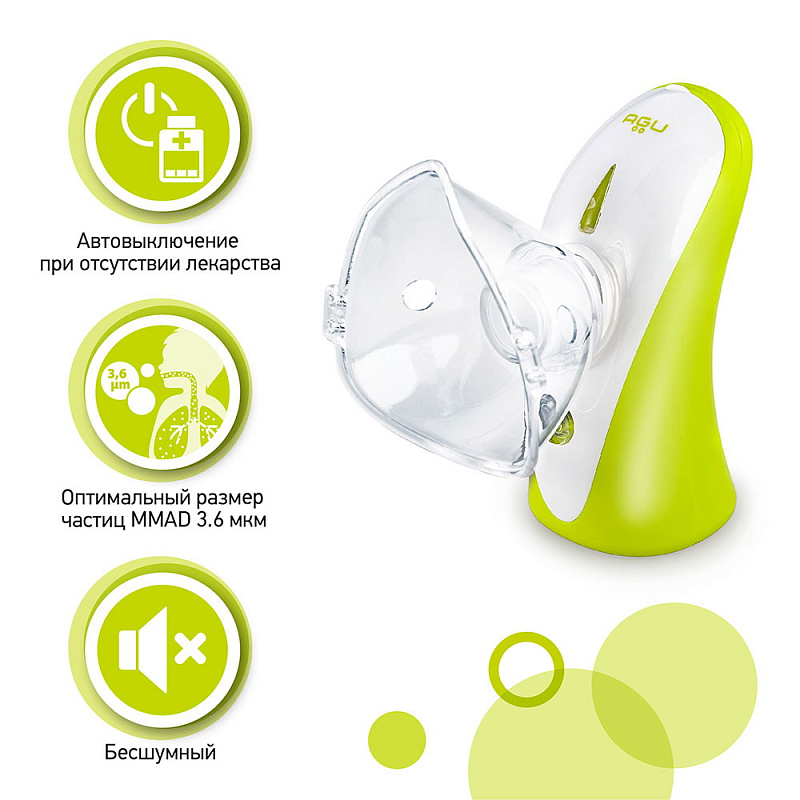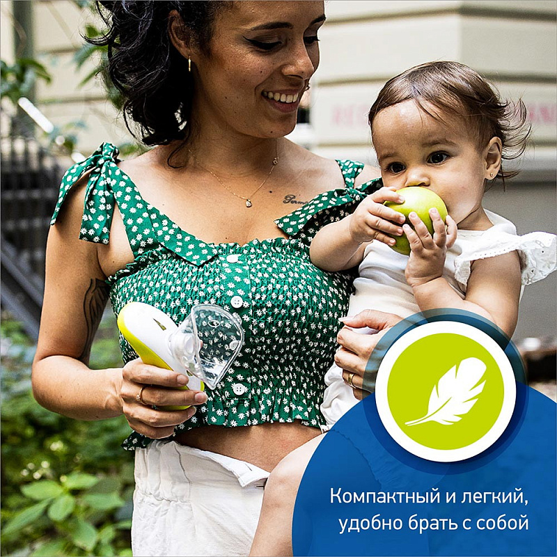 Компрессорные небулайзеры очень шумные и могут вызвать у ребенка страх перед процедурой. Поэтому стоит присмотреться к тихо работающим приборам. Также ингалятор должен быть легким и компактным, чтобы можно было брать его с собой на прогулку, в поездку. Такими характеристиками обладает детский меш-небулайзер Agu Baby Tomchi.