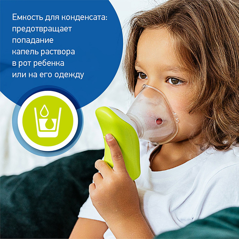 - Есть емкость для сбора конденсата, что исключает попадание капель препарата на одежду ребенка или в рот.