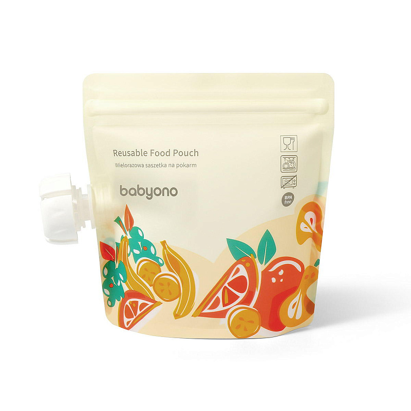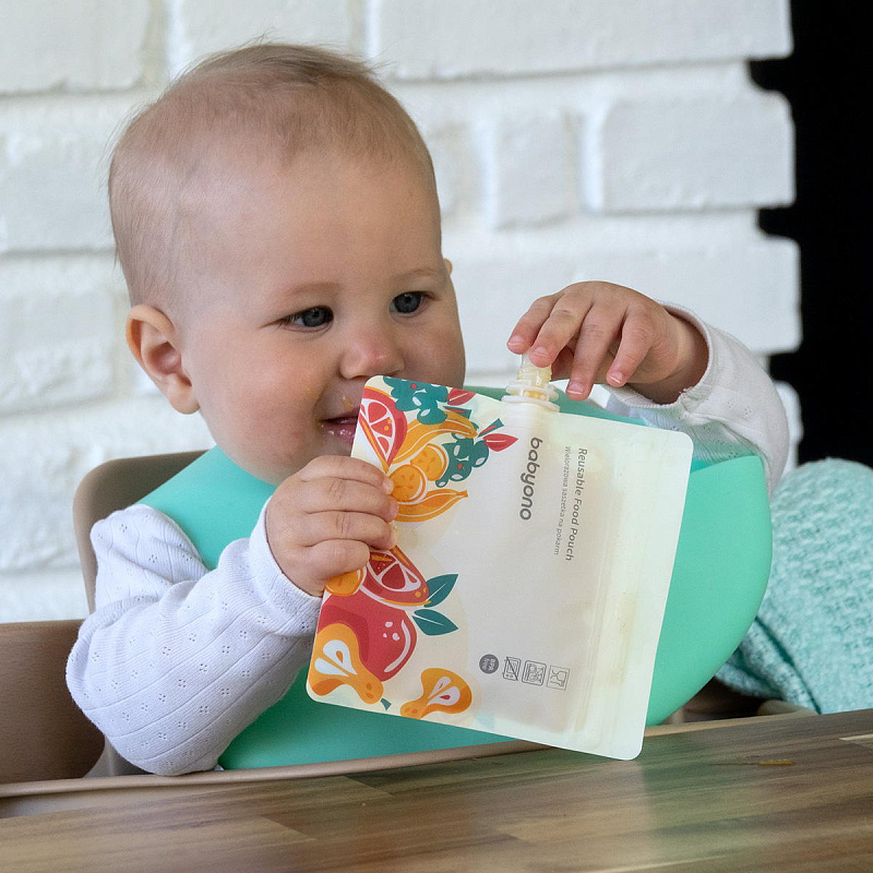 Многоразовый пакет для детского питания BabyOno с крышечкой 150 мл можно использовать дома и во время прогулок. Это единственный продукт на рынке с расширяющимся дном, которое позволяет пакету надежно стоять. Большое и легко наполняемое отверстие делает пакет практичным. Его удобно наполнять и мыть. Двойная струнная застежка в верхней части пакета эффективно защищает содержимое от проливания. Наш пакет - экологически чистый спутник для прогулок и обучения самостоятельному питанию.