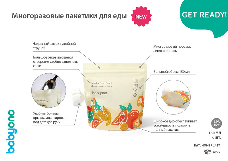 Самое важное - это безопасность. Пакет для детского питания изготовлен из пищевых материалов. Не содержит вредного BPA.