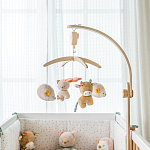 Очаровательный музыкальный мобиль, в котором маленькие игрушки вращаются и двигаются в такт колыбельной, обеспечивает спокойный и сладкий сон. Мобиль можно удобно и надежно прикрепить к кроватке или манежу. Фигурки можно легко снять и постирать в машине.