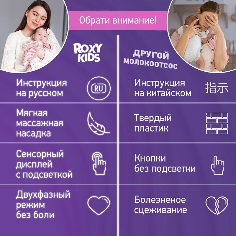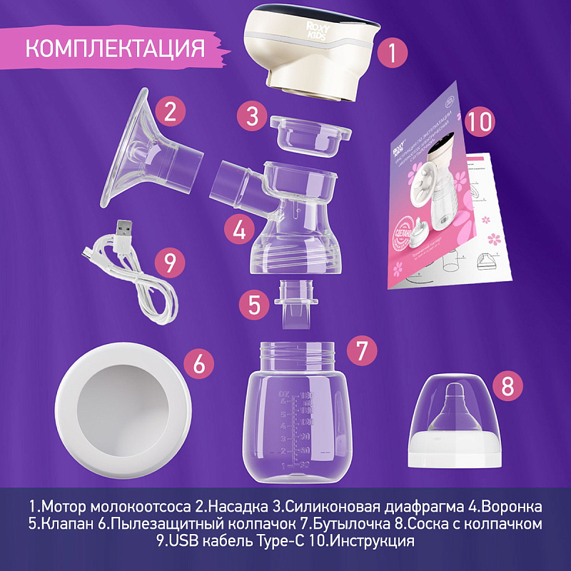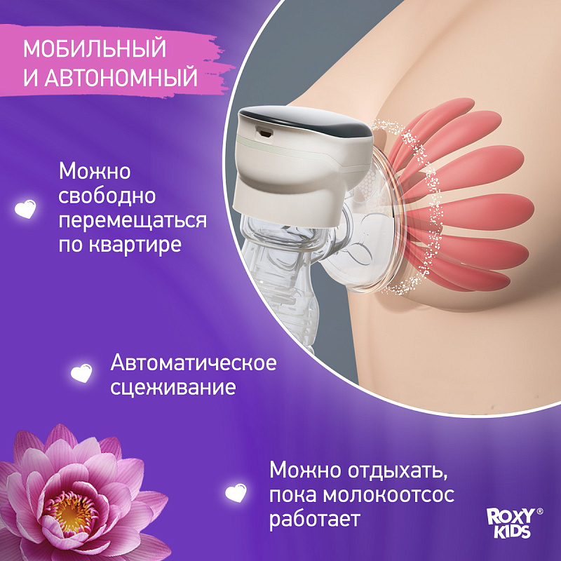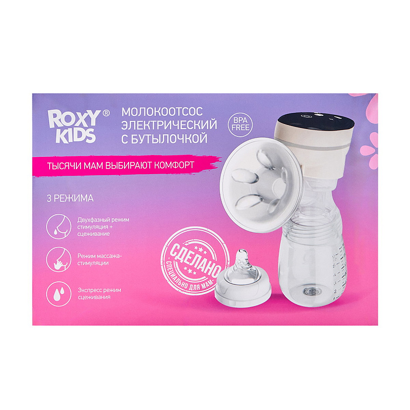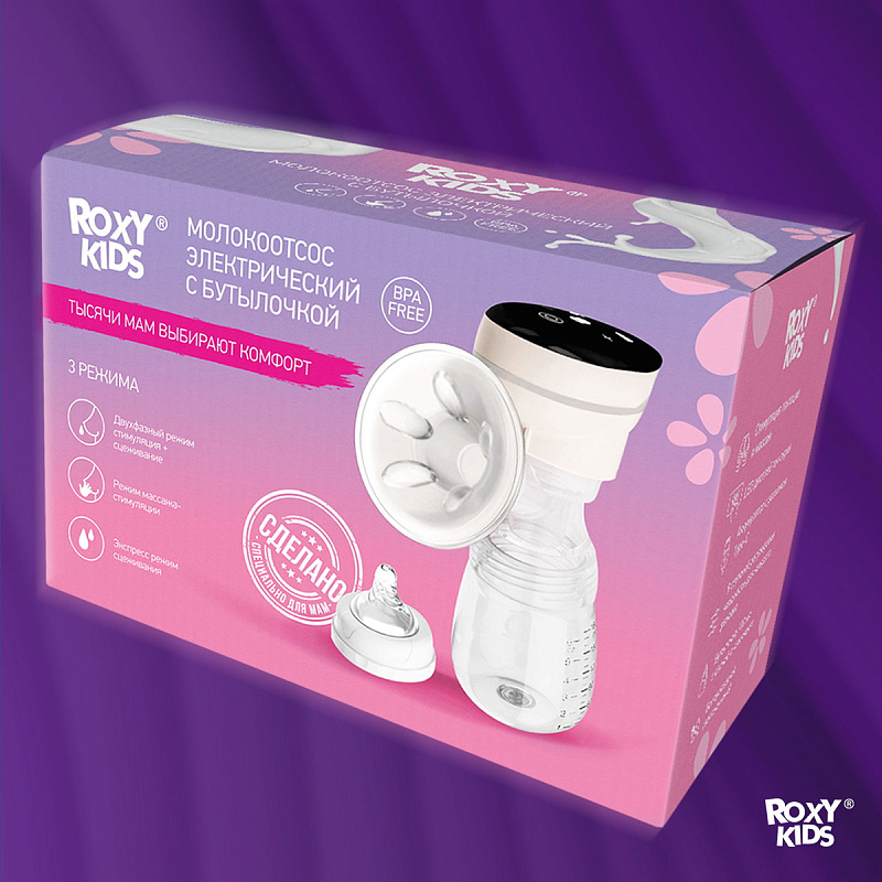Двухфазный электрический молокоотсос от ROXY-KIDS — незаменимый помощник каждой кормящей мамы. Массажная силиконовая накладка молокосборника герметично облегает грудь, обеспечивая комфортное и эффективное сцеживание. Три режима и девять ступеней регулировки мощности позволяют выбрать комфортные настройки. Функции стимуляции лактации и массажа помогают увеличить приток молока. Компактный дизайн и отсутствие трубок облегчают транспортировку, а сенсорный дисплей и аккумулятор Type-C делают молокоотсос удобным в использовании. В комплект входит защитная крышка для хранения и бутылочка с соской на 180 мл для кормления малыша. Тихий аккумулятор емкостью 1200 мАч обеспечивает несколько часов автономной работы. Наслаждайтесь материнством с ROXY-KIDS!