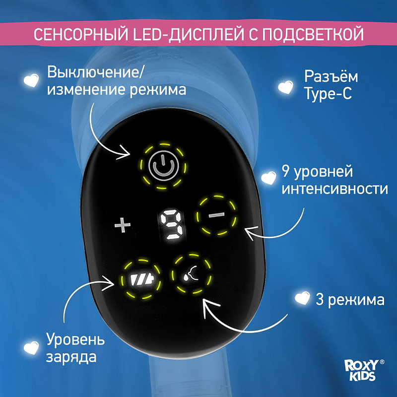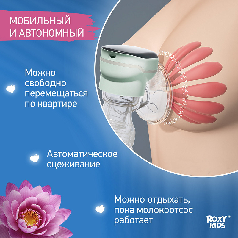 Двухфазный электрический молокоотсос от ROXY-KIDS — незаменимый помощник каждой кормящей мамы. Массажная силиконовая накладка молокосборника герметично облегает грудь, обеспечивая комфортное и эффективное сцеживание. Три режима и девять ступеней регулировки мощности позволяют выбрать комфортные настройки. Функции стимуляции лактации и массажа помогают увеличить приток молока. Компактный дизайн и отсутствие трубок облегчают транспортировку, а сенсорный дисплей и аккумулятор Type-C делают молокоотсос удобным в использовании. В комплект входит защитная крышка для хранения и бутылочка с соской на 180 мл для кормления малыша. Тихий аккумулятор емкостью 1200 мАч обеспечивает несколько часов автономной работы. Наслаждайтесь материнством с ROXY-KIDS!