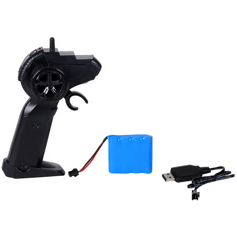 В наборемашинка, пульт, аккумулятор, USB кабель для зарядки