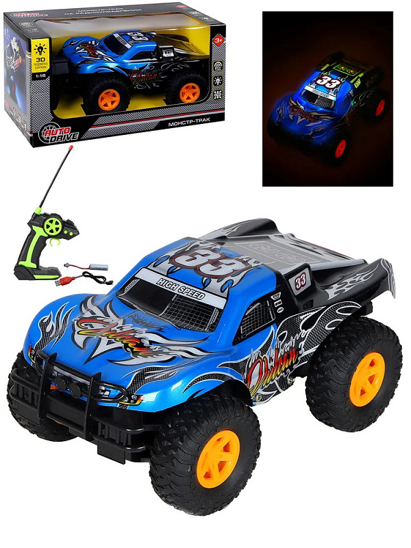 Монстр-трак AUTODRIVE с 3D подсветкой корпуса Р/У JB1168533 синий