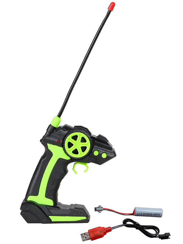 В наборемашинка, пульт, аккумулятор, USB кабель для зарядки