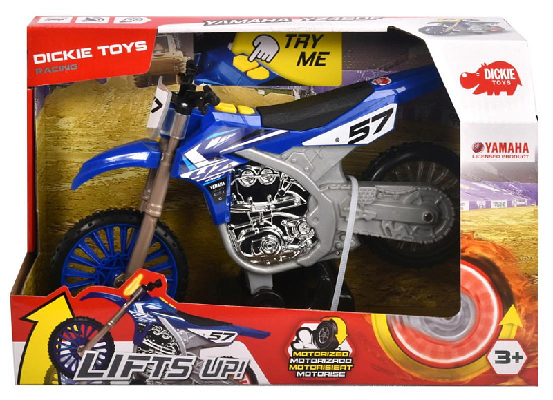 Мотоцикл Yamaha YZ от Dickie Toys изготавливается со всеми подробными характеристиками известной модели мотоцикла. Дизайн вдохновлен Yamaha. Впечатляющий игрушечный мотоцикл внушительного размера, оснащен моторизированным ходом, функцией поднятия на одно колесо, световыми и звуковыми эффектами.