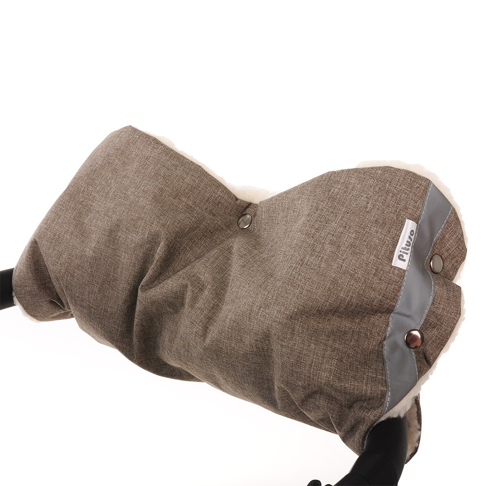 Муфта для коляски Pituso шерстяной мех белый плащевка классика Р052 Латте меланж