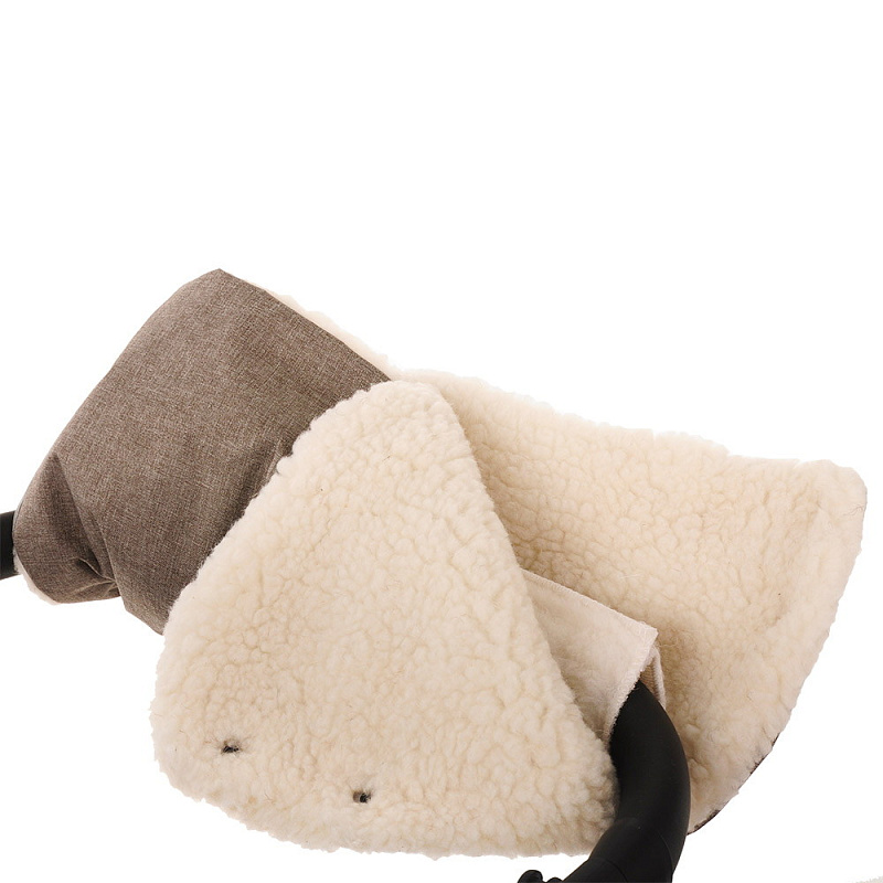 Муфта на ручку коляски застёгивается на кнопки. Обеспечит комфорт и тепло для рук в холодную погоду.
