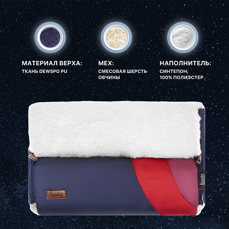 Внутренняя часть муфты — это смесовая овечья шерсть с высоким пушистым ворсом (высота 12 мм).