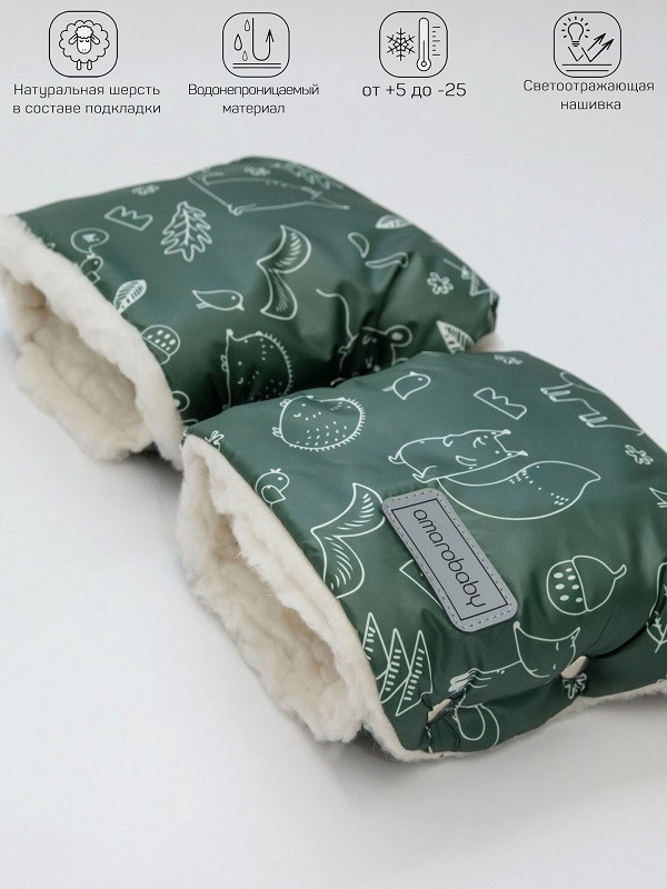 Муфты на ручку коляски AmaroBaby Snowy Travel зверята хаки