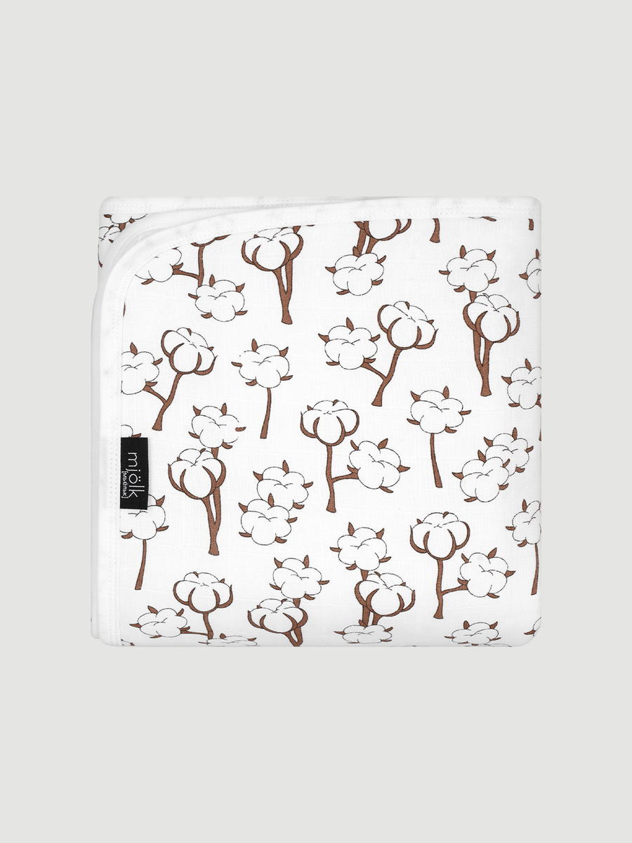 Двустороннее утеплённое муслиновое одеяло Mjölk [мьёльк] Хлопок выполнено вручную. Изготовлено из четырёх слоев 100% турецкого муслинового хлопка и утеплено наполнителем Alpolux, который состоит из микроволокна с добавлением шерсти мериноса. Одеяло невероятно мягкое, невесомое и тёплое. Подойдёт для сна в кроватке, автокресле и коляске, а также на выписку. Размер изделия составляет 100*75 см. Оно рассчитано на детей с рождения и до 3х лет. Одеялко простое в уходе, быстро сохнет и с каждой стиркой становится ещё нежнее и мягче.
