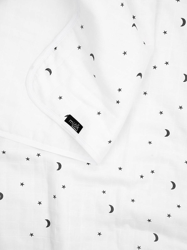 Двустороннее утеплённое муслиновое одеяло Mjölk [мьёльк] Ночное небо выполнено вручную. Изготовлено из четырёх слоев 100% турецкого муслинового хлопка и утеплено наполнителем Alpolux, который состоит из микроволокна с добавлением шерсти мериноса. Одеяло невероятно мягкое, невесомое и тёплое. Подойдёт для сна в кроватке, автокресле и коляске, а также на выписку. Размер изделия составляет 100*75 см. Оно рассчитано на детей с рождения и до 3х лет. Одеялко простое в уходе, быстро сохнет и с каждой стиркой становится ещё нежнее и мягче.