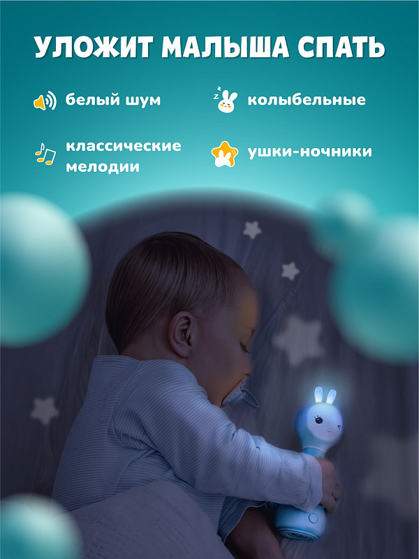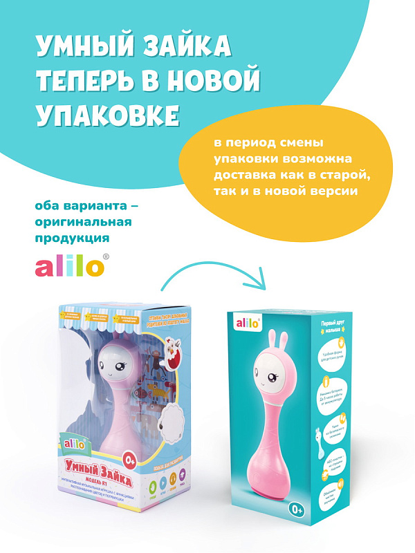 Меня зовут Умный Зайчик alilo, и я незаменимый помощник для мамы и лучший друг для малыша. Я познакомлю малыша с миром звуков и цветов, буду рассказывать сказки и стишки, петь песенки и сладкие колыбельные. Уже десятки тысяч родителей считают, что я один из самых лучших и полезных подарков для ребёнка.