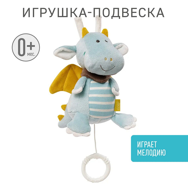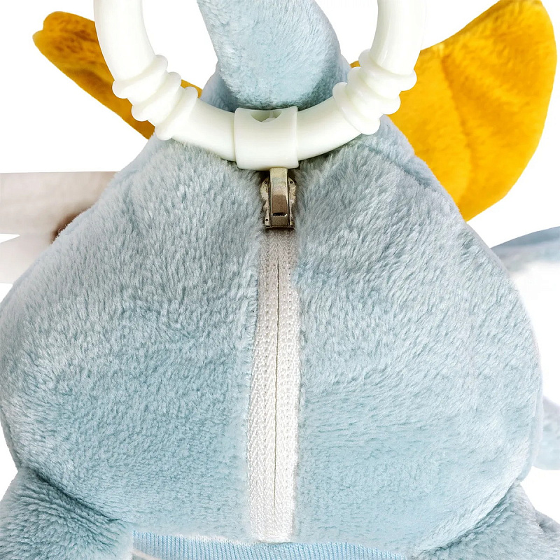 С помощью удобных завязок дракона можно прикрепить к кроватке, автокреслу или ручке коляски. Мелодия поможет успокоить ребенка в разных ситуациях. Механическая музыкальная система спрятана внутри игрушки. Её легко достать, расстегнув молнию.
