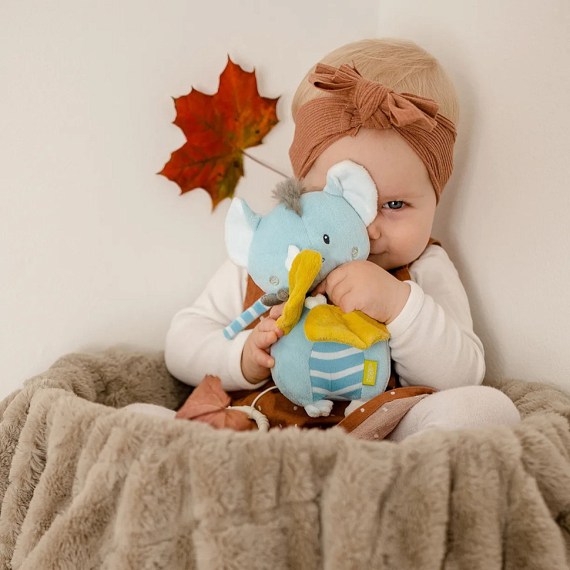 Плюшевая мышка очень приятная на ощупь – с ней здорово обниматься и играть. Музыка включается, если потянуть за колечко. Игрушка развивает хватательные навыки, тактильное восприятие, зрение и слух ребенка.