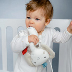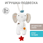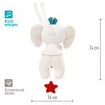 С помощью удобных завязок слоника можно прикрепить к кроватке, манежу, автокреслу или коляске. Мелодия поможет отвлечь и успокоить ребенка в разных ситуациях. Механическая музыкальная система спрятана внутри игрушки. Её легко достать, расстегнув молнию.