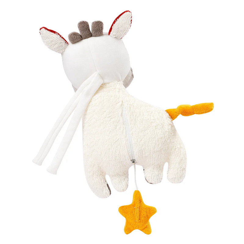 Музыкальная игрушка в виде очаровательной зебры, воспроизводящая мелодию из французской народной песни «Братец Жак». Приятная громкость расслабляет и убаюкивает маленьких мечтателей. Время воспроизведения около двух минут.