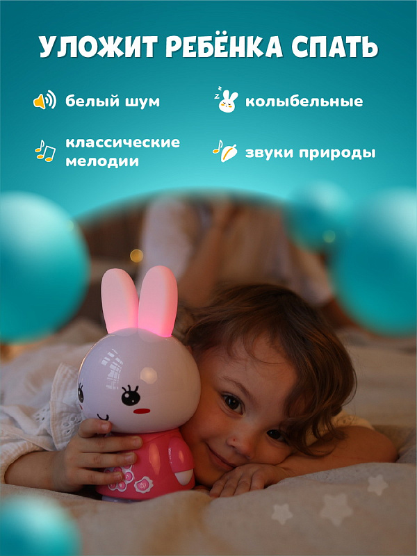 - Функция Bluetooth: можно включать музыку и сказки с любых устройств и использовать зайчика в качестве аудиоколонки!
