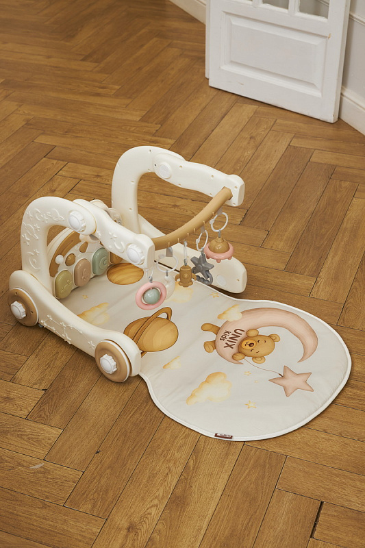 Развивающий центр для малышей 0+ Cosmo 5 в 1 Camel – уникальный игровой комплекс для всестороннего развития детей с самого рождения. Этот многофункциональный продукт сочетает в себе 5 различных игровых зон, каждая из которых направлена на развитие определенных навыков и способностей вашего малыша.