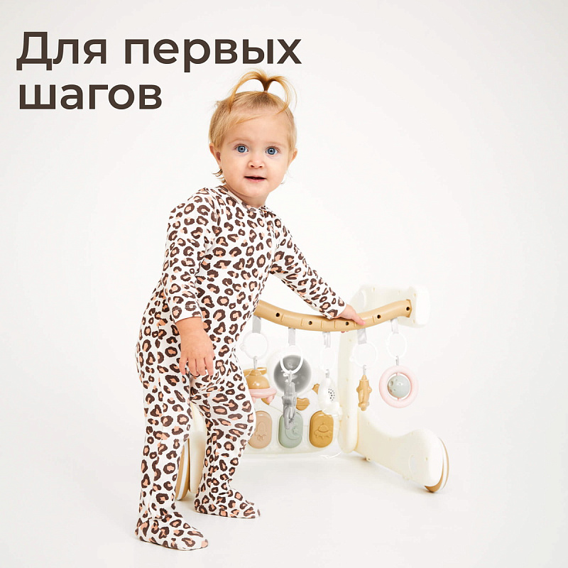 Игровой центр легко трансформируется в ходунки, которые облегчают первые шаги ребенка благодаря колесам и эргономичной ручке. Устойчивая конструкция игрушки 0+ для мальчиков и девочек гарантирует надежность и долговечность изделия.